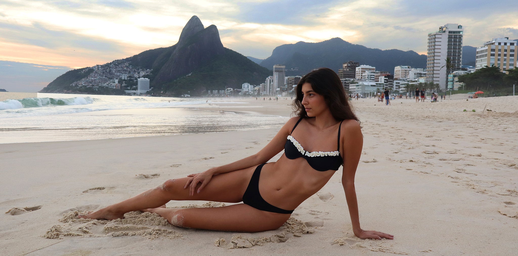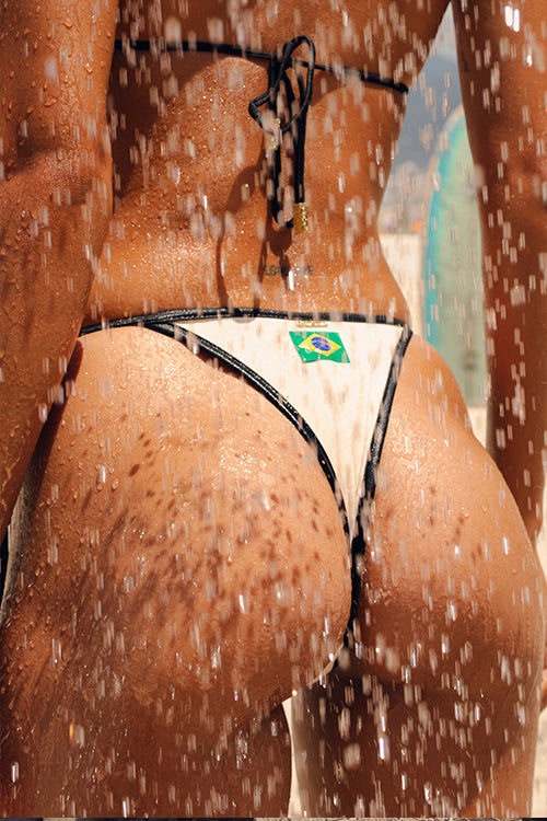 Brazilian tie-side bottom in stripes lurex sparkle. Features: Side tie closure She Will logo trim Fully lined Model wears size S